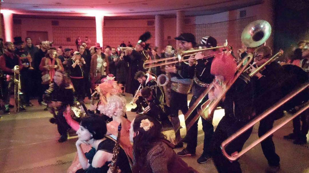 It is the reveler’s job to scare off the Nain for yet another year with their cheers of hope and faith in their city. Event goers are encouraged to dress to conceal their identity from the red gnome and this year’s disguises did not disappoint. From Grecian goddesses to countless red fairies and devils, the parade was part Mardi Gras and part Renaissance Festival. Walking down Second was a labyrinth in itself with masses of people, drum lines, marching bands, elaborate floats, and even a steam punk carraige-cycle. As the parade ended, and the Nain in hiding until next year, the Fountain Room of the Masonic Temple opened up to continue the party with drinks, a DJ, and a performance from the Detroit Party Marching Band.