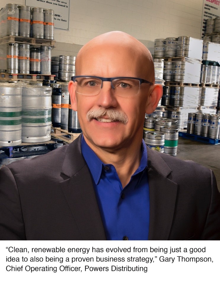 “Powers is a family business with deep roots in our community,” said Thompson. “Investing in sustainability and clean energy is part of our commitment to our community, our state and to future generations.” As Gary explained it “…the entire beer supply chain from brewing to distribution to your refrigerator is a long and energy hungry road.”